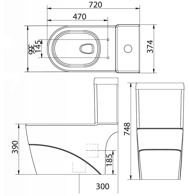 3/6 Liter Dual Push Button Actuation (Available 2.5/3.5 Liter) Flushing with bottom outlet Soft Closing Seat & Cover or Eco-Washer Seat & Cover or Stainless Steel UF Soft Closing Seat & Cover Available in S/P Trap P-Trap 185mm L Bracket & Nuts Bottom Outlet-210mm L 690 x W 410 x H 670mm- Kategori : Kamar Mandi